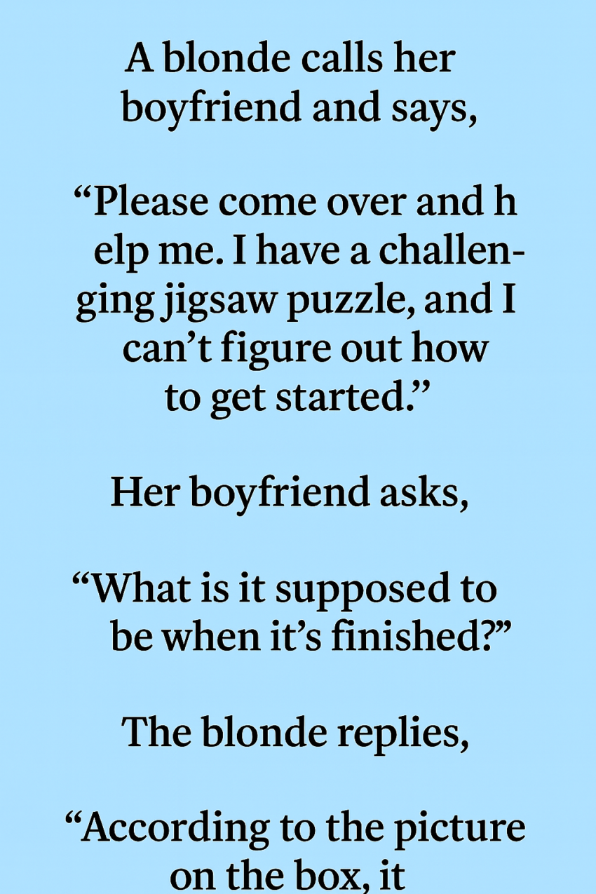 “Please come over and help me. I’ve been staring at this jigsaw puzzle for hours, and I just can’t figure out how to get started.”