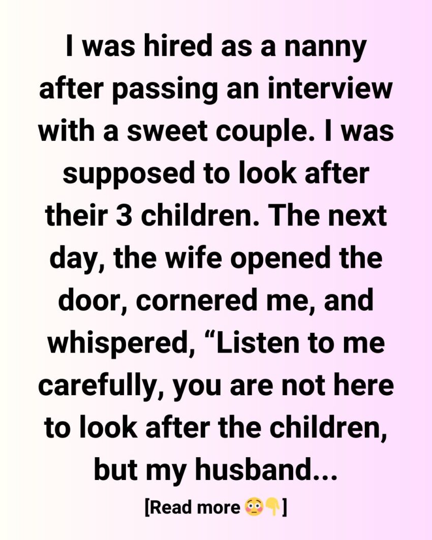 I was hired as a nanny after passing an interview with a sweet couple. I was supposed to look after their 3 children.