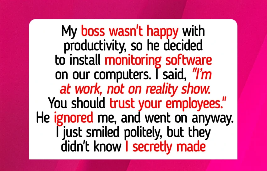When my boss installed monitoring software on all our computers “for productivity,” I didn’t argue — I just made one tiny change on my screen that turned his whole plan inside out. Let’s just say he’s suddenly very into “trust” again.