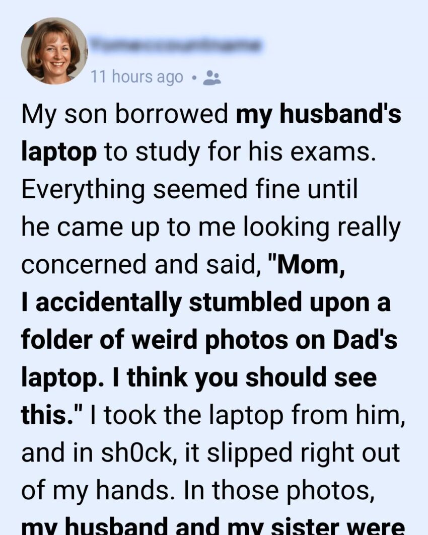 “Mom,” he said quietly, holding the laptop like it weighed a hundred pounds. “I accidentally stumbled upon a folder of… weird photos on Dad’s laptop. I think you should see this.”