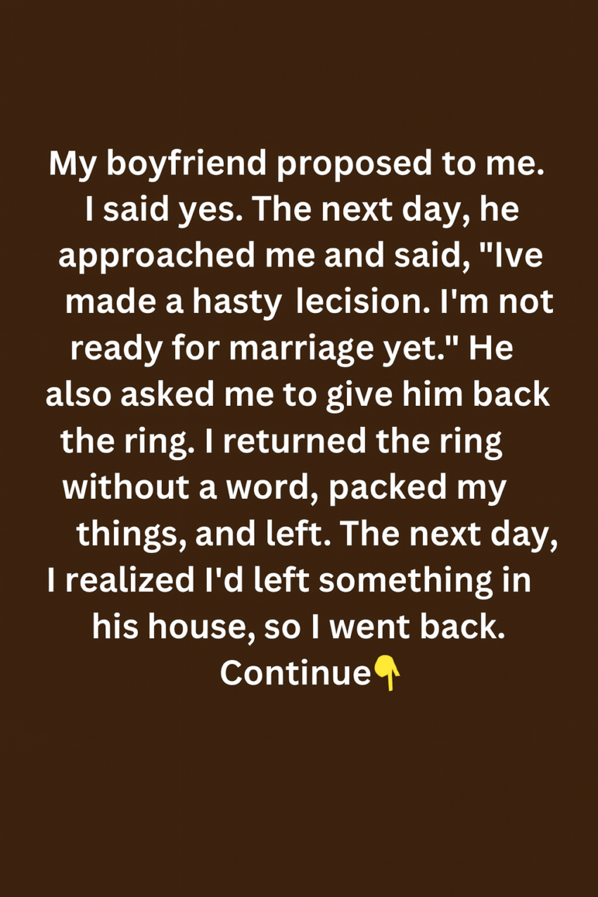 The very next day, he sat me down and said, almost casually, “Sorry, I think I made a hasty decision. I’m not ready for marriage.” Then he asked for the ring back. The words knocked the air out of me.