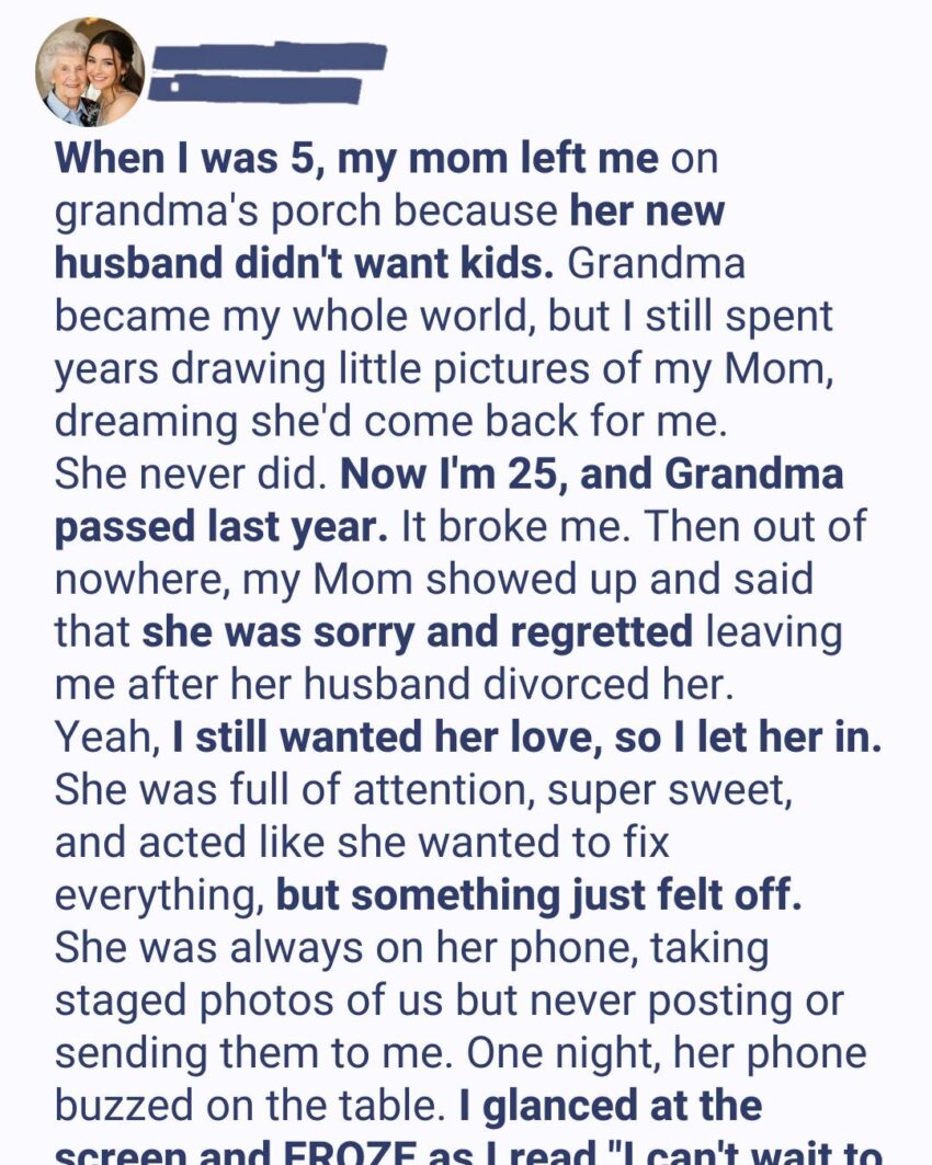 My Mom Left Me at Grandma’s Door When I Was 5 Because Her Husband Didn’t Want Kids—20 Years Later, She Returned Asking for Forgiveness