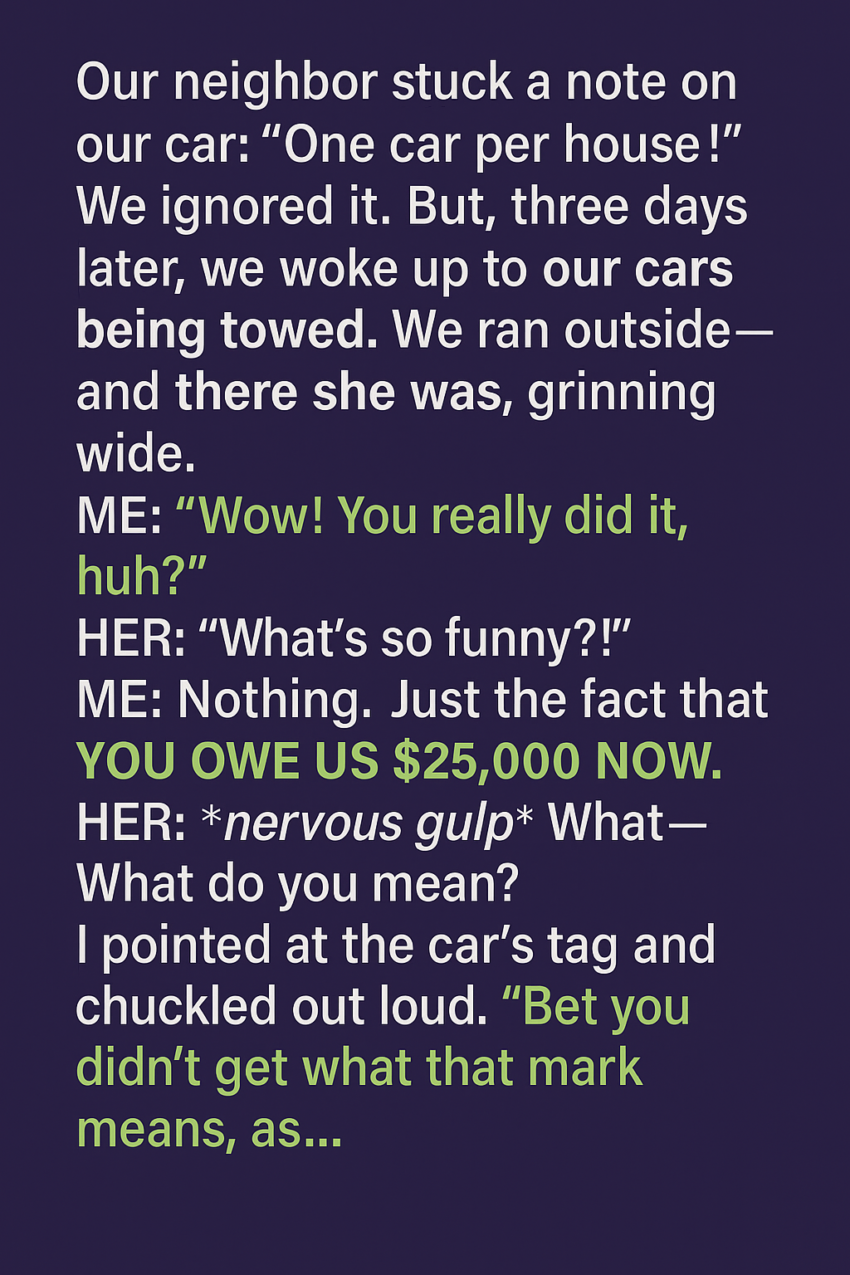 One of the drivers barely looked up. “HOA violation. One car per household. Orders came in this morning.”