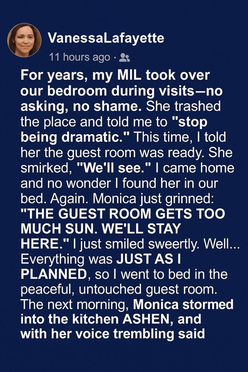 My mother-in-law wasn’t just visiting — she was invading, and my master bedroom was always her first conquest.