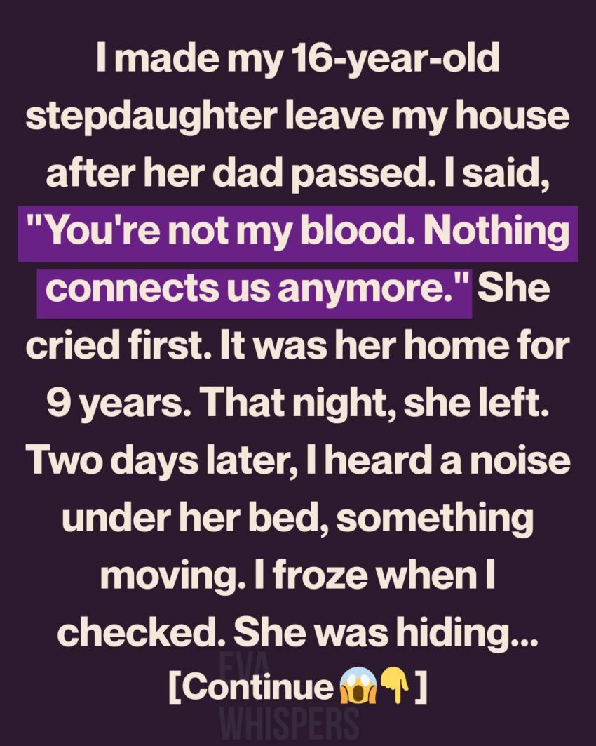 I told myself it was practical, even logical. The house had been in my family for generations. I’d inherited it long before I married her dad, and after he passed, I convinced myself there was no reason for her to stay. Grief had made me cold, sharp, and cruel in ways I didn’t want to admit.