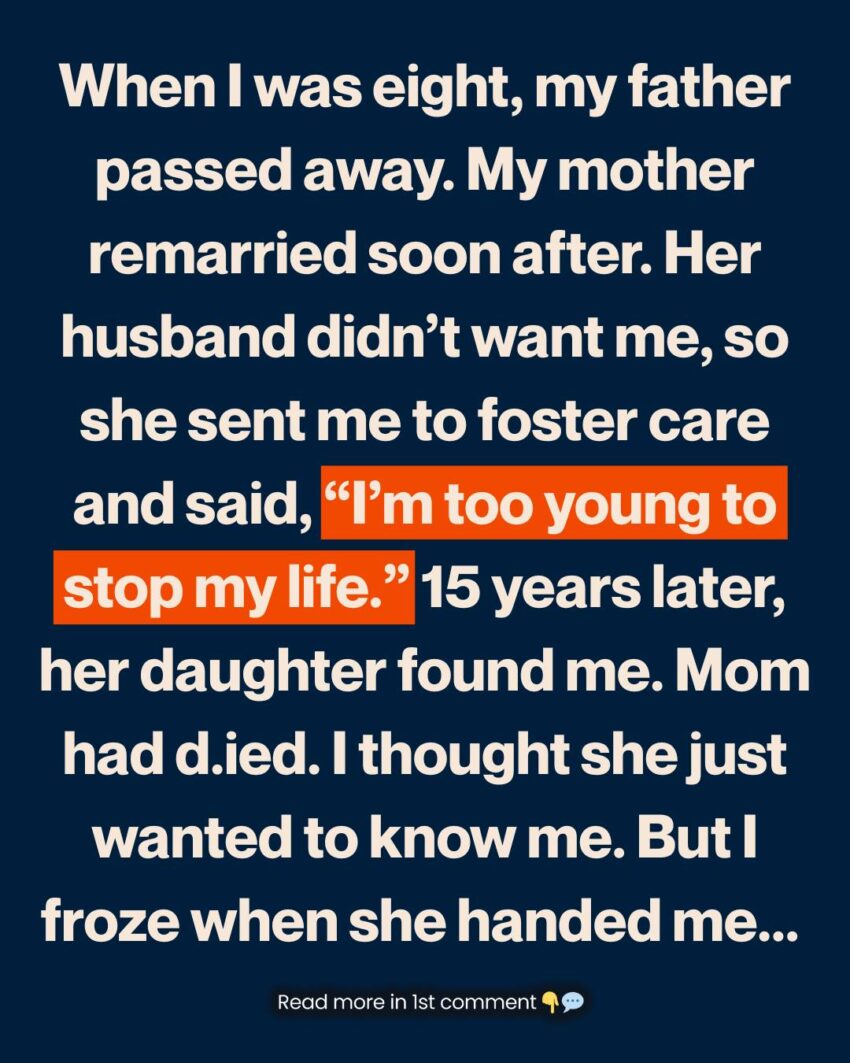 But then she swallowed hard and said, “Our mom just d.ied. It was all so sudden. But… she left this to you.”