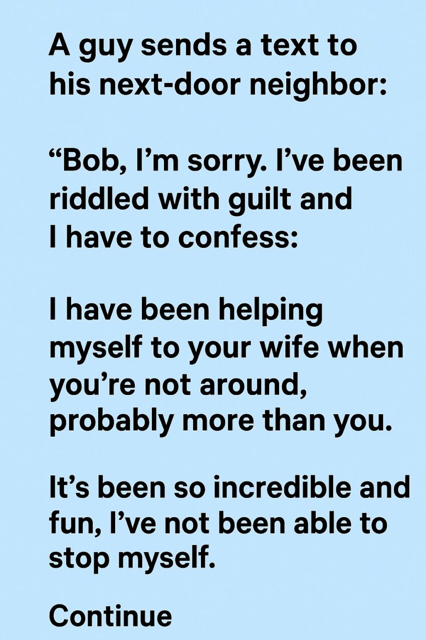 A man, overwhelmed with guilt and nerves, finally decided he had to come clean to his next-door neighbor, Bob. His hands trembled as he typed out the text, convinced honesty was the only way to ease the weight on his conscience.