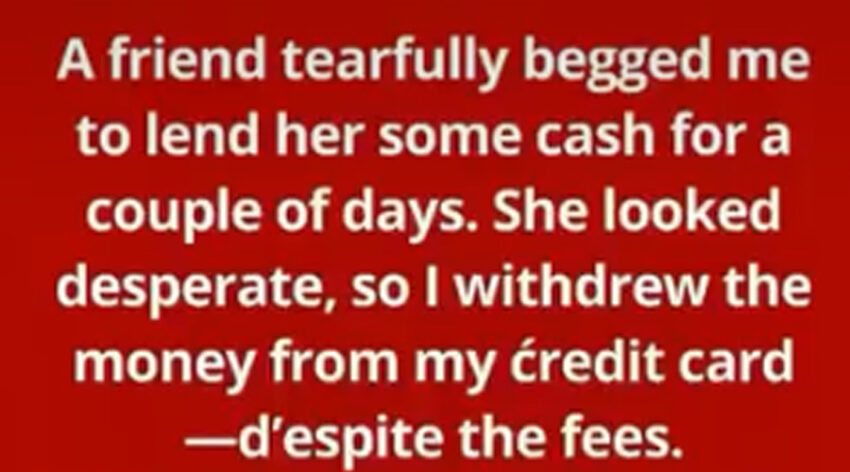A friend tearfully asked me to lend her some cash for a couple of days. She was so worried that I agreed to withdraw money from my credit card. And there’s a fee and daily commission. We go to the ATM, I withdraw the money, give it to her.