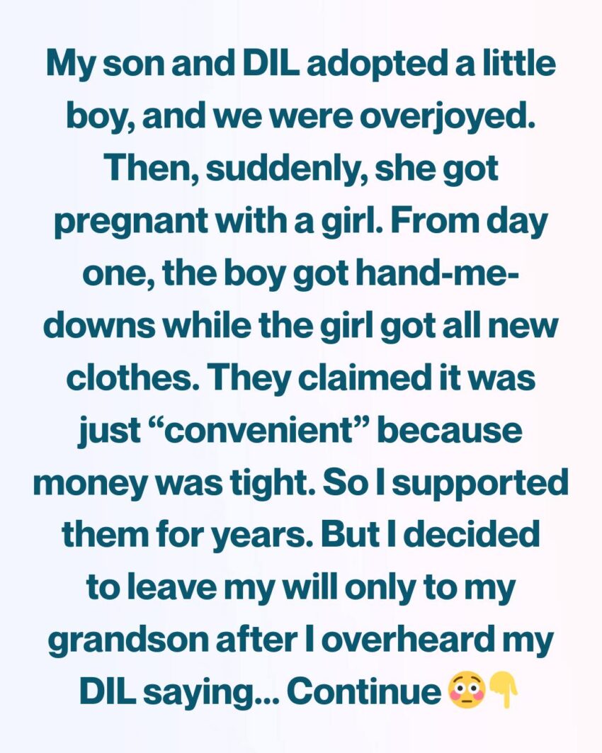 One afternoon, I overheard my daughter-in-law on the phone with her mother, whispering in the kitchen. She was talking about college plans. Scholarships. Savings accounts. I waited, expecting to hear my grandson’s name.