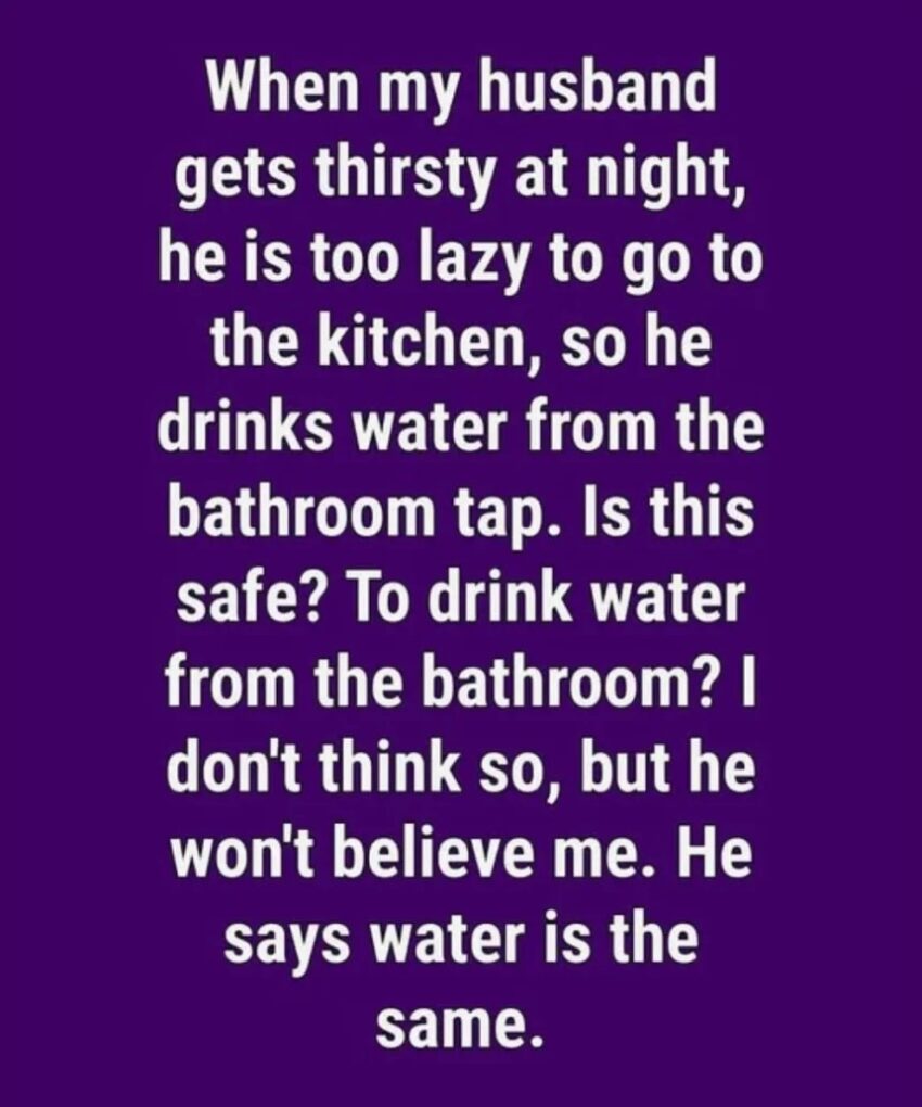 I couldn’t shake the thought that bathroom water just wasn’t the same as the crisp, filtered kind from our kitchen sink. “Water’s water,” he always shrugged.