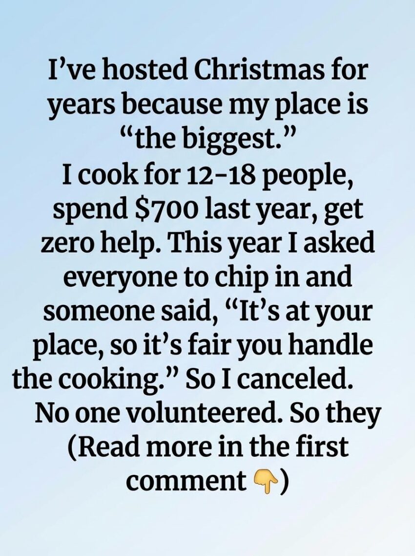 This year, something in me shifted. As the holidays approached, I realized how uneven the arrangement had become. I wasn’t upset about hosting; I was tired of carrying the entire load alone. So, for the first time, I spoke up. I suggested that everyone chip in—either by contributing food, helping with costs, or simply lending a hand in the kitchen. The response was quiet and uncomfortable. One comment lingered the longest: since the gathering was at my house, it was only fair that I handled the cooking. That was the moment I understood how invisible my effort had become.