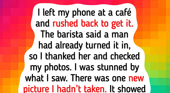 I left my phone at a café and rushed back to get it. The barista said a man had already turned it in, so I thanked her and checked my photos. I was stunned by what I saw. There was one new picture I hadn’t taken. It showed me, sitting at that same table… but from outside the café window. I asked who returned the phone, but no one had noticed him. I still don’t know who took that photo — or how he knew where I’d be.