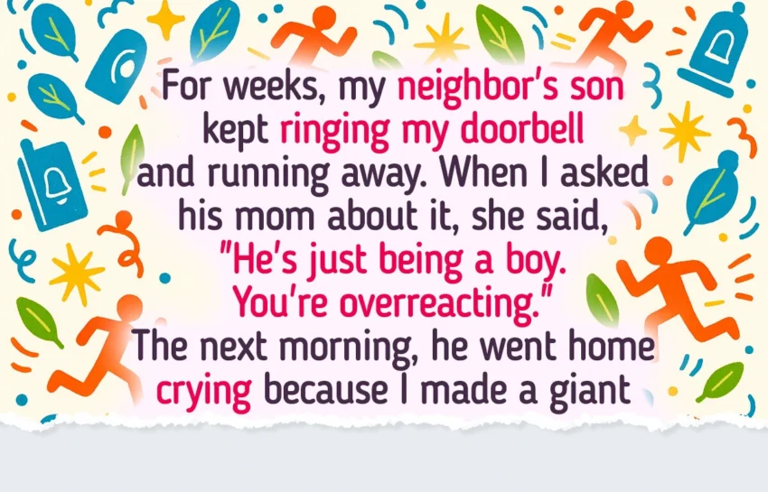 For weeks, my neighbor’s son kept ringing my doorbell and running away. When I told his mom about it, she said, “He’s just being a boy. You’re overreacting.” The next morning, he went home crying because I made a giant Beware of Dog sign and taped it to my front door. Then I downloaded some barking sounds on my phone and played them when my doorbell rang. When I peeked through the window, I saw the boy standing frozen, eyes wide.