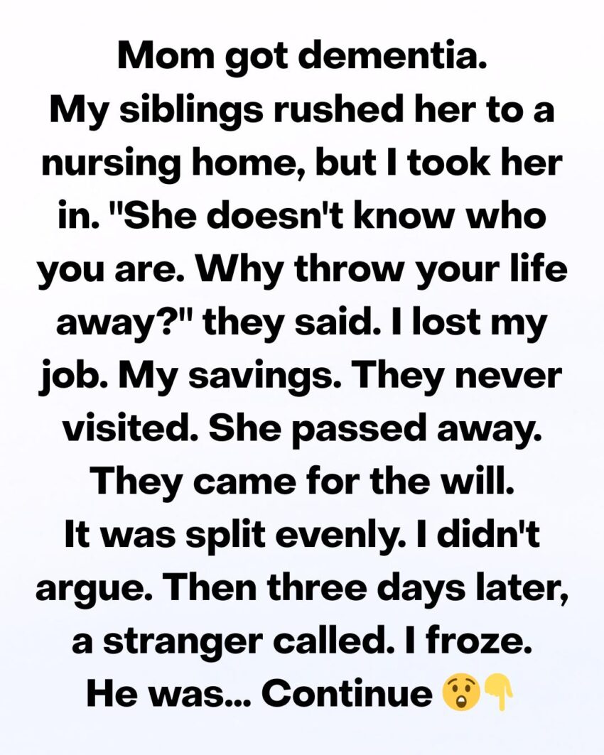 When my mom was diagnosed with dementia, my siblings reacted fast—efficient, decisive, distant. They found a nursing home within a week and spoke in the careful, clipped language of logistics. Costs. Availability. Liability. When I said I wanted to take her into my home, they stared at me like I’d volunteered to drown.