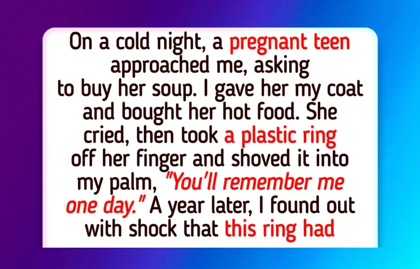 I could afford. The receptionist, a woman in her 40s, kept staring at my necklace like she knew it. She asked where I got the ring, and I told her the whole thing — cold night, scared girl, my coat.
