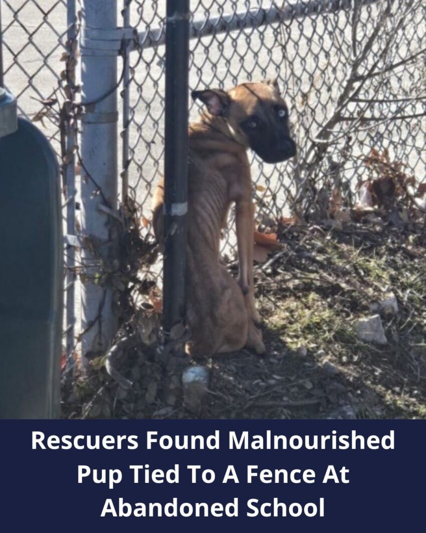 Rescuers Were Heartbroken After Realizing Someone Tied This Pup To A Fence Near An Abandoned School