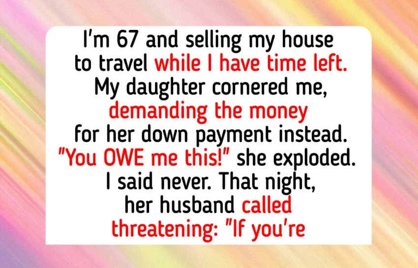 I’m 67 and selling my house to travel while I still can. My daughter demanded I hand her the money for her down payment instead. “You owe me this!” she screamed. I said absolutely not.