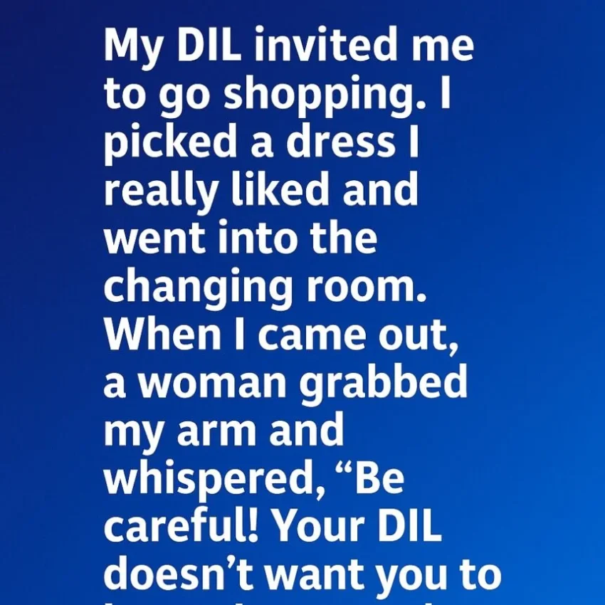 My DIL invited me to go shopping. I picked a dress I really liked and went into the changing room. When I came out, a woman grabbed my arm and whispered, “Be careful!