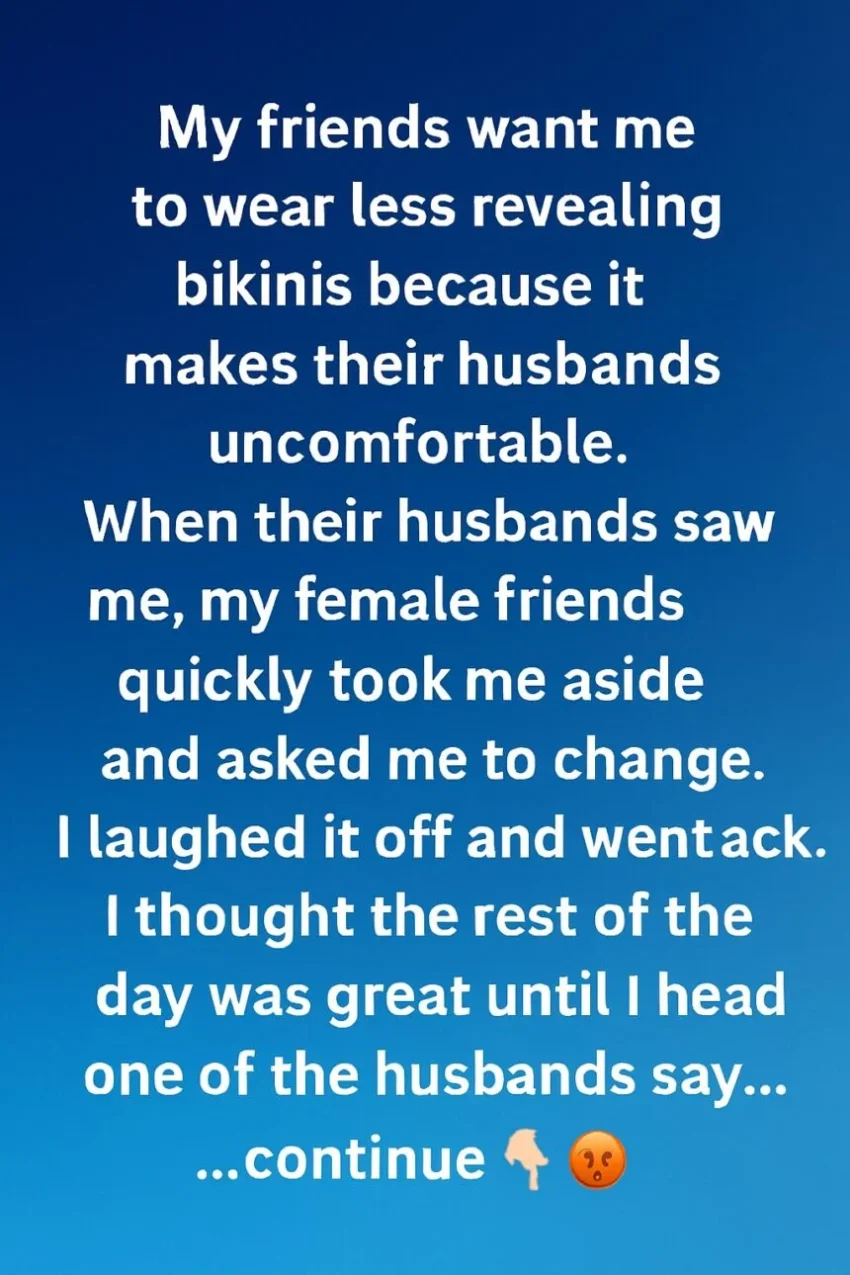 Later that evening, my closest friend pulled me aside and apologized. She explained that she hadn’t meant to shame me but was worried about her marriage and didn’t know how to express it. We had an honest conversation — not about bikinis, but about trust, boundaries, and how friendships can get tangled when insecurities go unspoken.