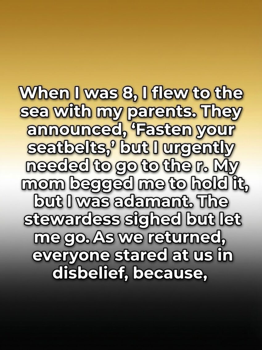 When I was eight, the world still felt elastic, as if rules could stretch if you pulled on them hard enough. That day, the plane hummed with a strange excitement as it traced a silver line toward the sea. The captain’s voice floated down the aisle, calm and official, asking everyone to fasten seatbelts. My parents obeyed, clicking theirs into place like punctuation at the end of a sentence. But inside me, another urgency spoke louder. I remember gripping my mother’s sleeve, insisting I needed to go right then, not later, not soon—now. Her eyes searched my face, half worry, half apology, as if she were choosing between gravity and mercy.