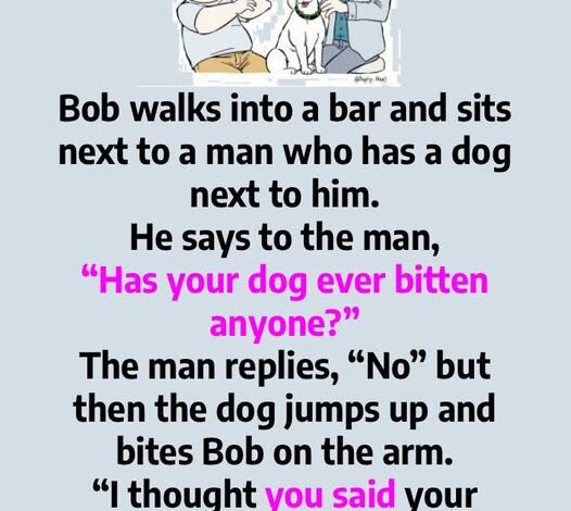 Without warning, the dog leaps up and clamps its teeth onto Bob’s arm. Chaos follows. Bob yells, the chair scrapes backward, and suddenly everyone in the bar is paying attention. Furious and confused, Bob turns to the man and shouts that he was told the dog had never bitten anyone.