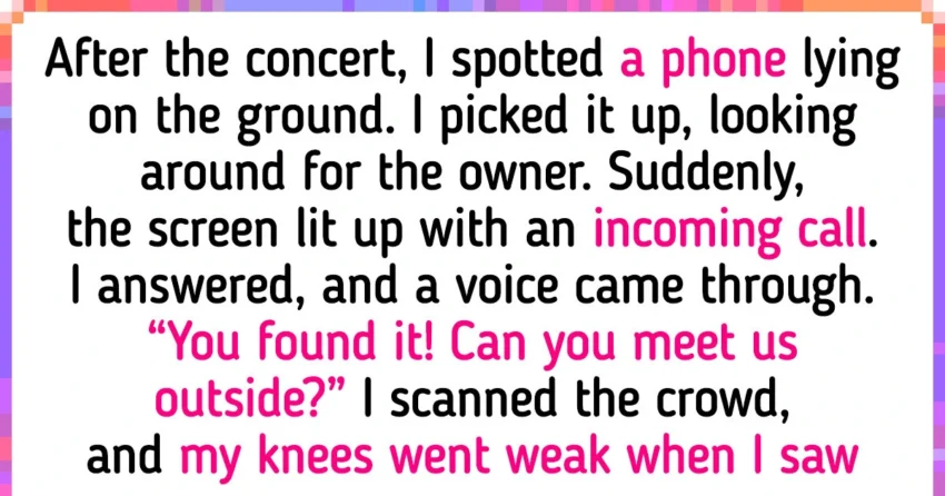 After the concert, I spotted a phone lying on the ground. I picked it up, looking around for the owner. Suddenly, the screen lit up with an incoming call. I answered, and a voice came through. “You found it! Can you meet us outside?”