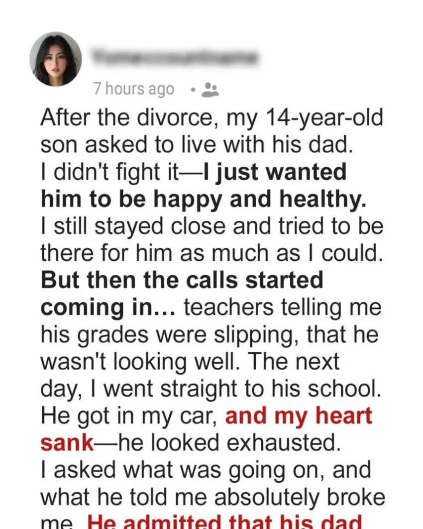When my 14-year-old son, Mason, asked to live with his dad after the divorce, I agreed, hoping they could rebuild their bond. At first, everything seemed fine—calls full of jokes, photos of pancakes and movie nights. But slowly, his messages stopped.