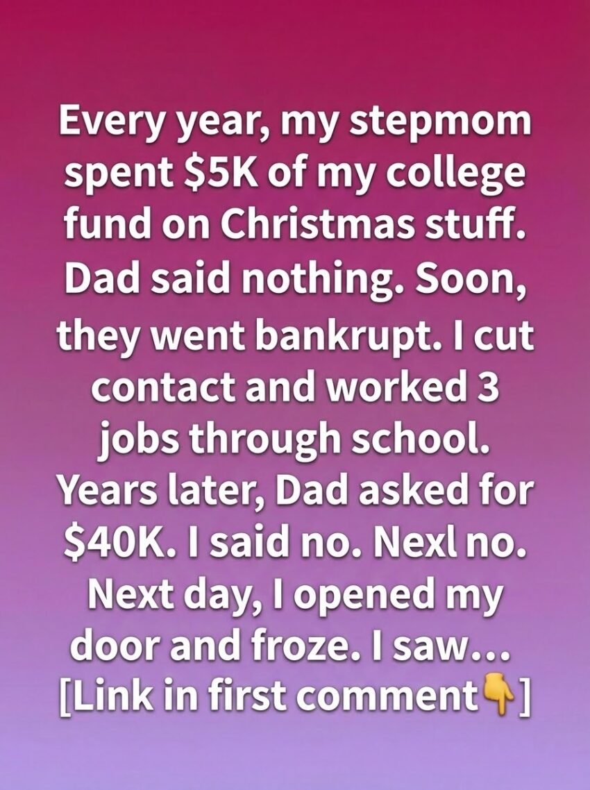 For as long as I could remember, money meant uncertainty. Every year, while I carefully planned for college and dreamed about a future built on independence, my stepmother treated my education fund like a holiday expense account. Thousands disappeared into decorations, gifts, and celebrations that looked impressive from the outside but left nothing lasting behind. My father knew. He always knew. Yet he stayed silent, choosing peace in his marriage over responsibility to his child. When everything finally collapsed and bankruptcy followed, I wasn’t surprised—just tired. I walked away, not out of anger, but out of self-preservation, and learned early that if I wanted stability, I would have to create it myself.