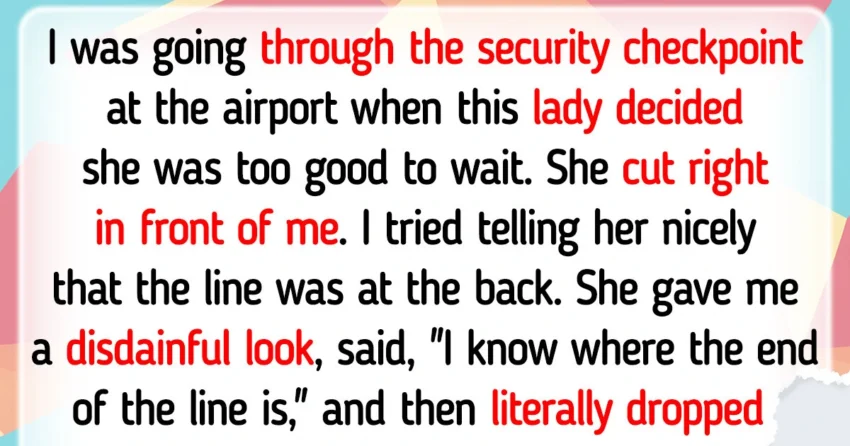 I was going through the security checkpoint at the airport when this lady decided she was too good to wait. She cut right in front of me. I tried telling her nicely that the line was at the back. She gave me a disdainful look, said, “I know where the end of the line is,” and then literally dropped her carry-on at the start of the conveyor belt and went straight to the security body check.