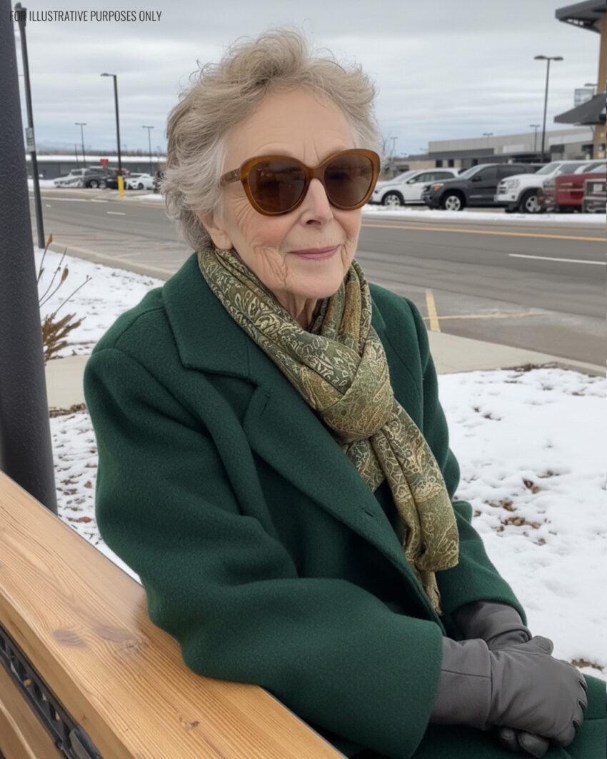 At the far end of the bench sat an older woman, maybe 70, dressed in a neat cream-colored coat and dark sunglasses. She’d been so still I hadn’t even noticed her. She turned her head slightly toward me, and when she spoke, her voice was calm and dry.