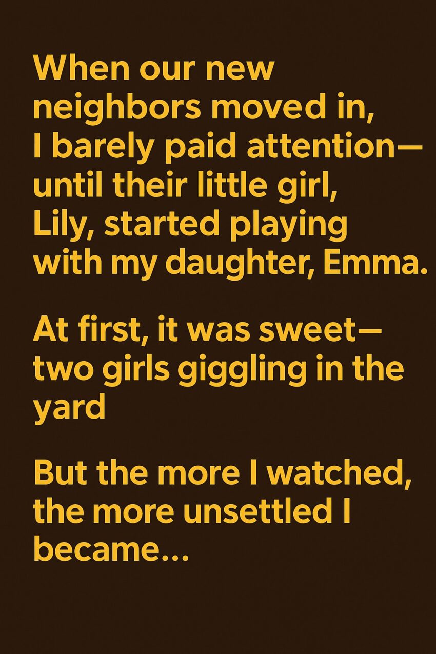When our new neighbors moved in, I barely paid attention—until their little girl, Lily, started playing with my daughter, Emma. At first, it was harmless and sweet: two children giggling in the yard, braiding each other’s hair, running in little circles until they collapsed in the grass.
