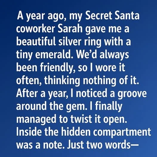 A year ago, my Secret Santa coworker Sarah gave me a beautiful silver ring with a tiny emerald. We’d always been friendly, so I wore it often, thinking nothing of it. After a year, I noticed a groove around the gem.