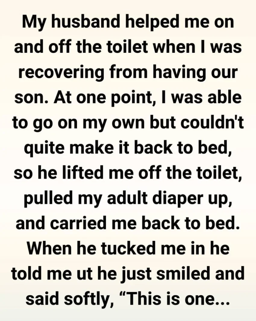 One night, when exhaustion and pain had completely overtaken me, my husband quietly helped me to the bathroom. I couldn’t even make it back to bed by myself. Without hesitation, he lifted me gently, pulled my diaper back up, and tucked me under the covers.