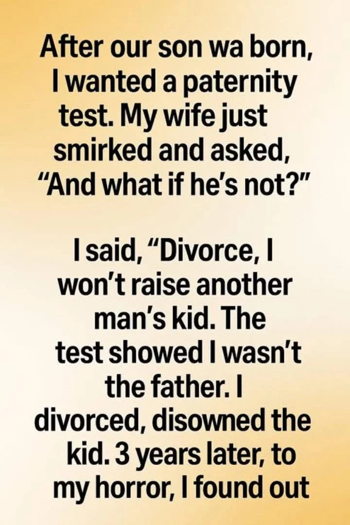 The test confirmed my worst fear — I wasn’t the father. I walked away, heart numb.