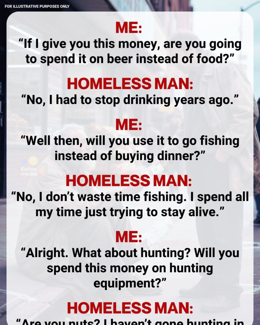 I was walking downtown late one afternoon, the kind of gray, tired day where everyone seemed to be in a hurry but nowhere in particular. Near the corner by a small grocery store, I noticed a homeless man sitting on the curb. His coat was thin, his shoes looked like they’d survived too many winters, and his beard was more gray than brown now.