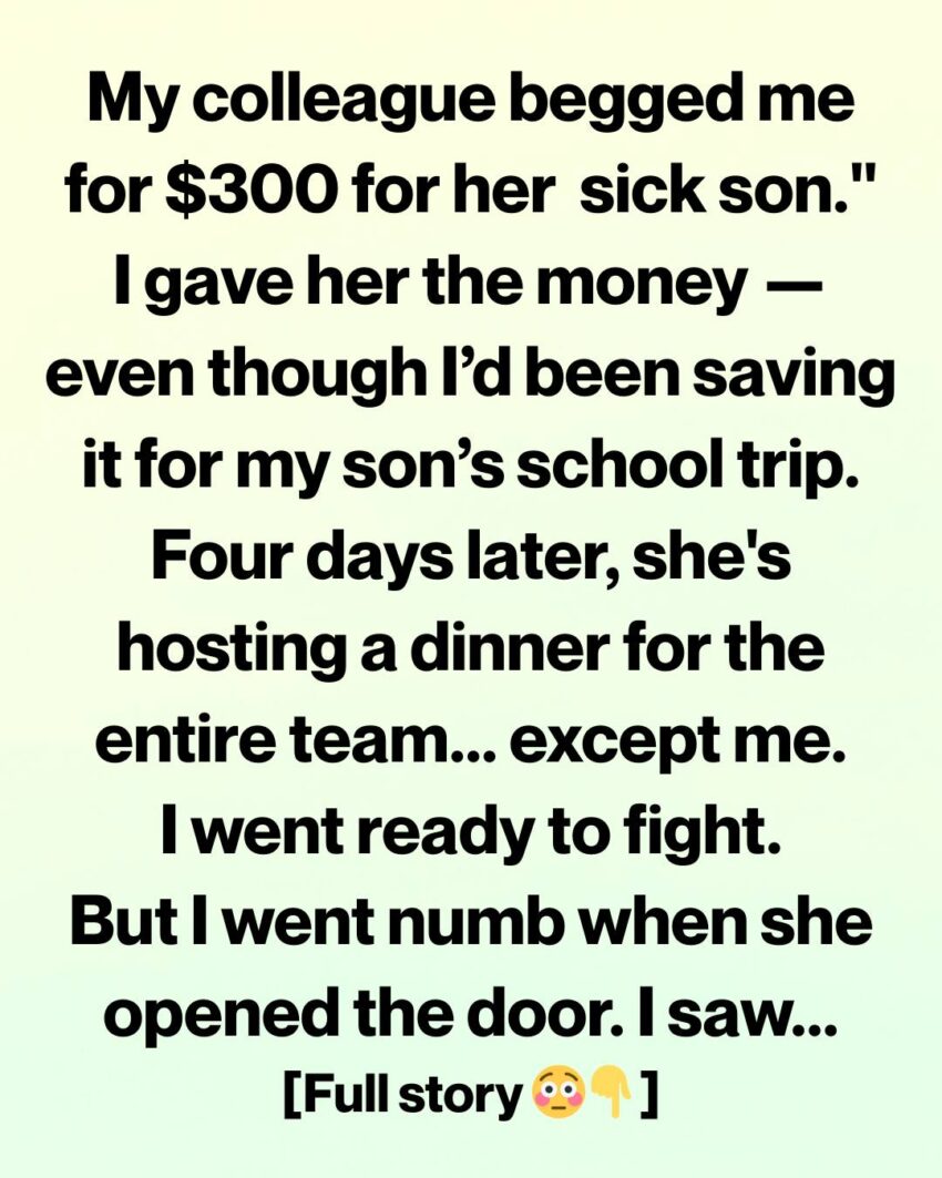 She told me her seven-year-old son had just been diagnosed with a serious autoimmune condition. The medication, she said, was expensive and urgent. Her paycheck barely stretched far enough for rent and groceries, and her family wasn’t helping. She needed $300—just enough to get through the week. As she spoke, tears streamed down her face, and her voice cracked when she mentioned her son being in pain.