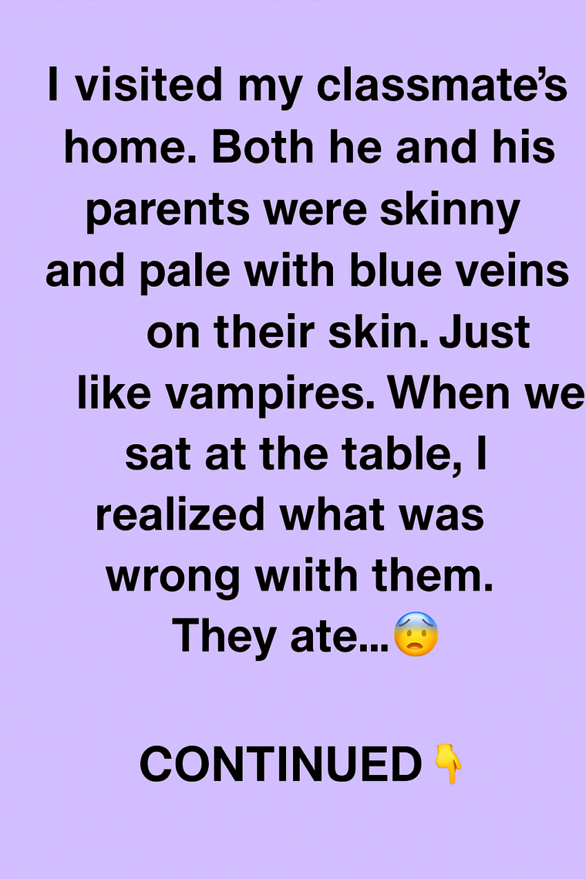 I visited my classmate’s home once. Both he and his parents were skinny and pale, their blue veins visible beneath their skin. They looked almost vampiric. When we sat at the table, I realized what was wrong.