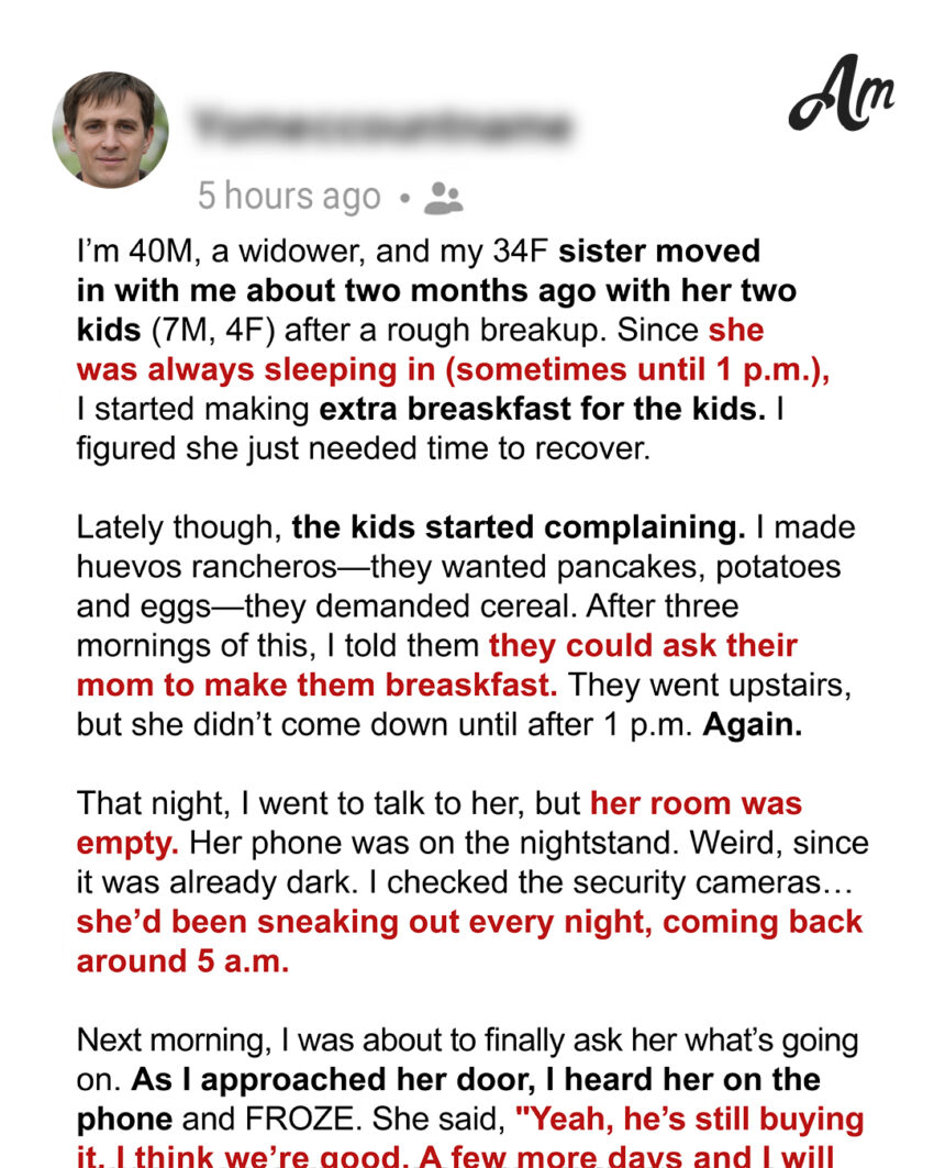 After my sister’s messy breakup, I opened my home to her and her two kids without hesitation, but what I overheard one morning shattered my trust and changed all our lives forever.I’m Mike. I’m 40. I run a small auto repair shop just outside of Spokane. I used to love Sundays; getting up early, flipping on the old vinyl player, making pancakes, sipping coffee while the sun rose. But that was before life split in two: before and after Sweeney.She was my wife. Fierce, funny, always cold, and somehow always barefoot. Four years ago, I lost her to a heart condition we never even knew existed. One minute, she was laughing in the living room with her mug of chamomile, and the next, I was standing in a sterile hospital room, holding her sweater like it might still be warm. It wasn’t.