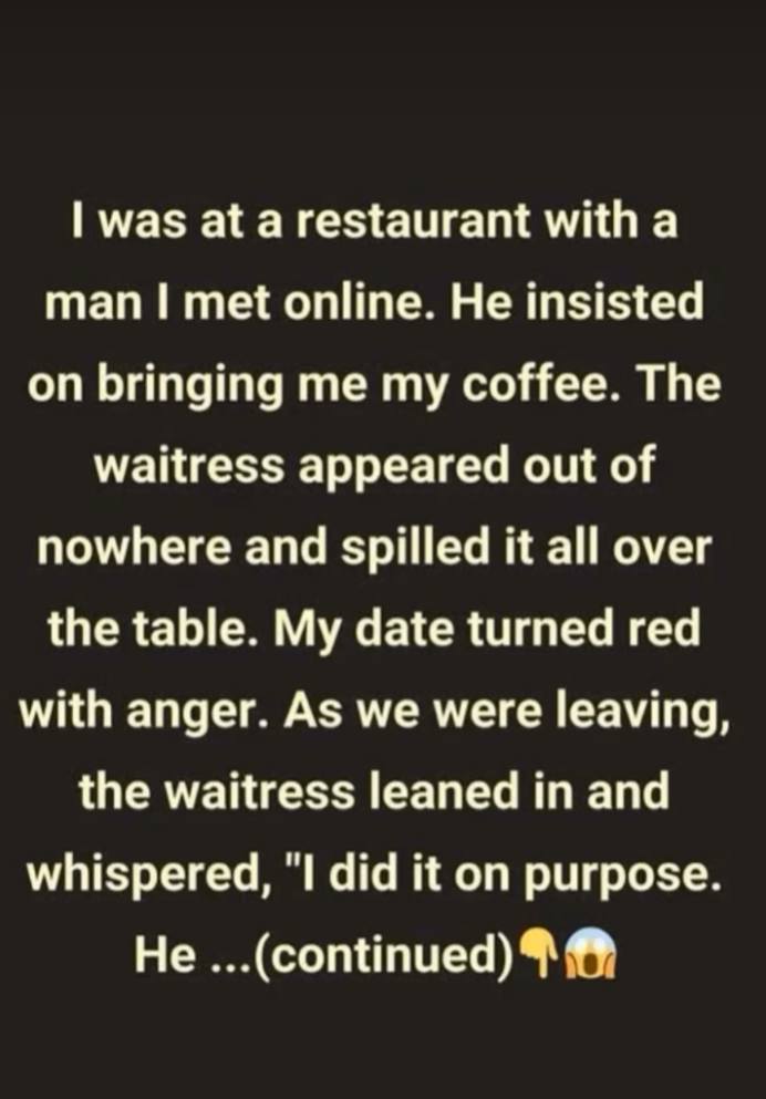 handed them over anyway, trusting he’d return with the money. He did. 6. The Spilled Coffee On a date, a waitress “accidentally” spilled coffee on the table. As the couple left, she whispered to the woman that it was on purpose—her date had been,