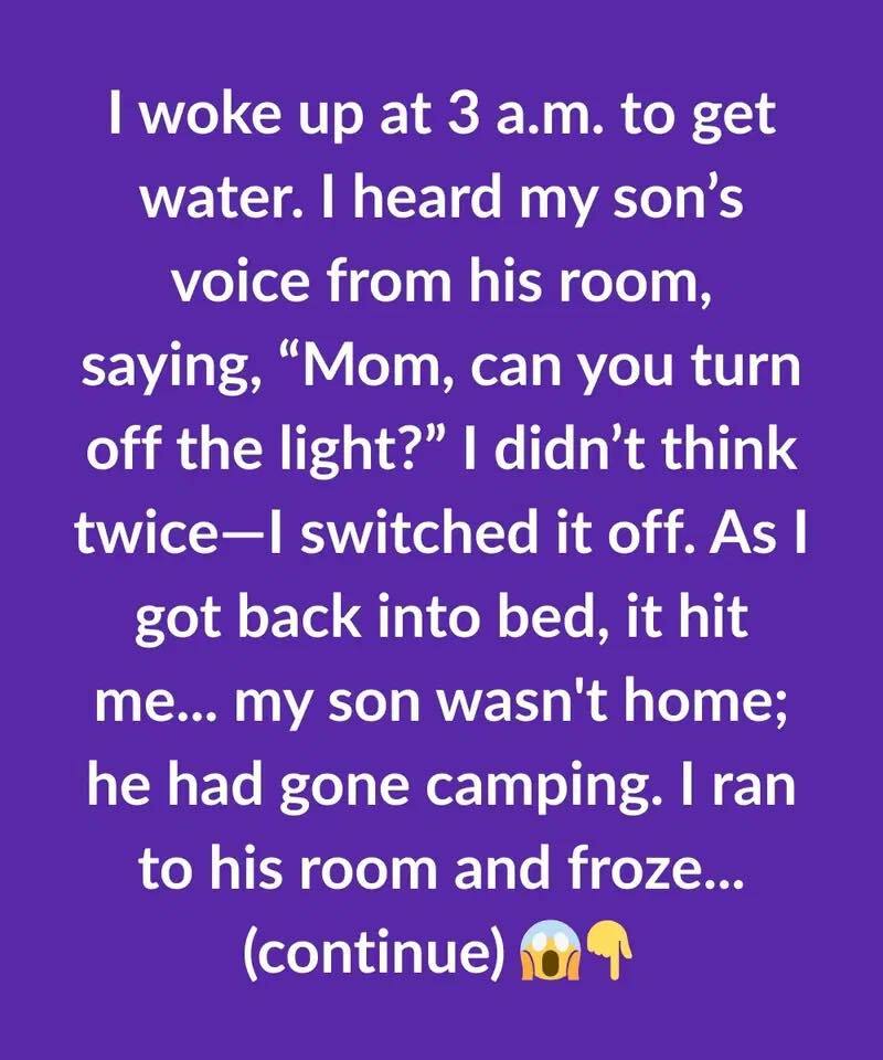 I didn’t think twice—I switched it off. As I got back into bed, it hit me… my son wasn’t home; he had gone camping.