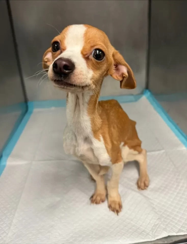 What she found was heartbreaking: a tiny, skin-and-bones puppy who could barely stand.