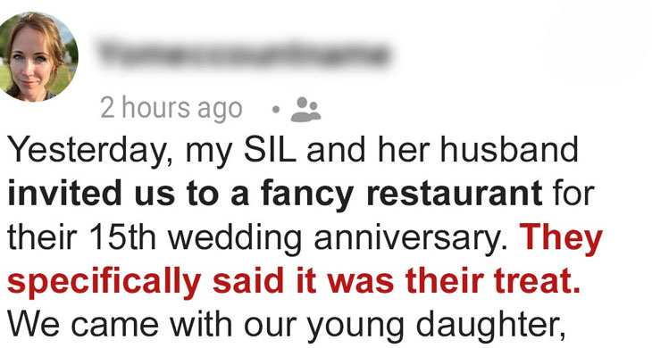 Amanda invited us — me, my husband David, and our daughter Ella — to celebrate her 15th anniversary with a cheerful message: “It’s our treat, honey.” Polished as ever, she hosted dinner at a fancy downtown restaurant. We brought a card with $200 inside as a kind gesture, never suspecting the “treat” would come with a tab.
