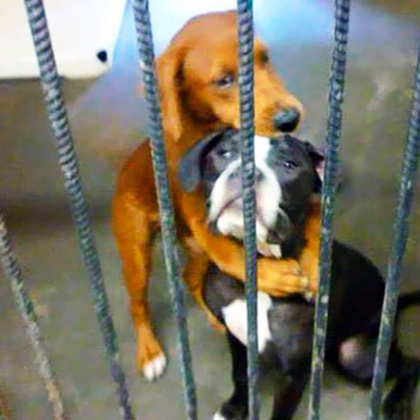 One day, a poignant photo of these two dogs surfaced, showing them in a comforting embrace inside their enclosure. Kala, a tender-hearted and timid dog, clung to Kira, who looked equally gentle yet sorrowful.