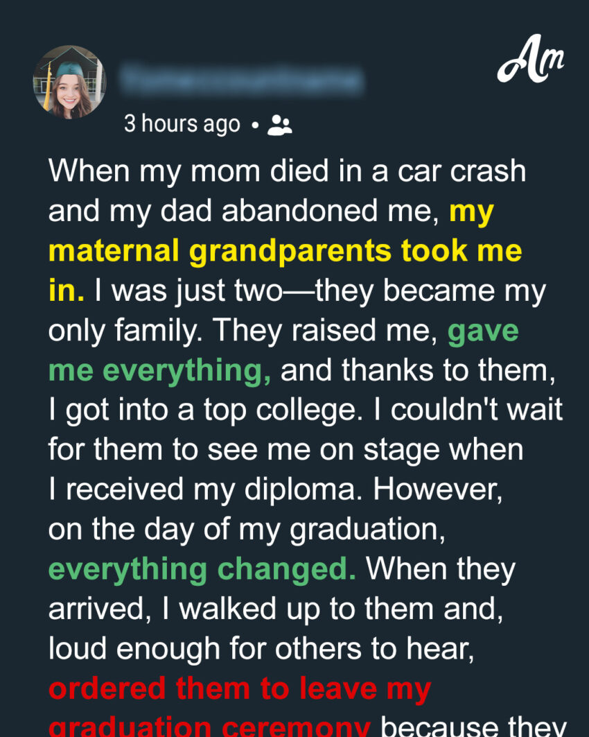 I Kicked Out My Grandparents, Who Raised Me, From My Graduation — Karma Quickly Taught Me a Lesson Posted on June 12, 2025 by ShakeelAhmed