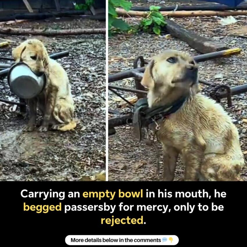 Carrying an empty bowl in his mouth, he begged passersby for mercy, only to be rejected.