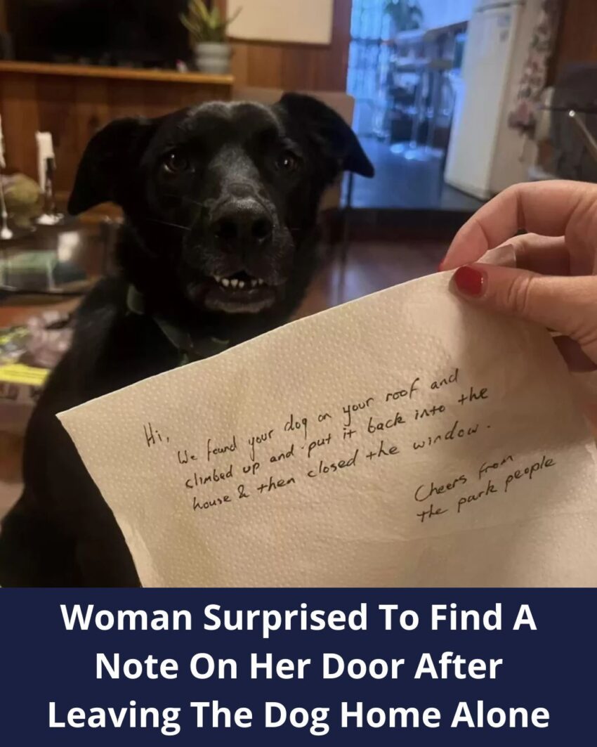 This time, however, Zwar was shocked by what she read on the note. The note said: Hi, we found your dog on your roof and we climbed up and put him back into the house and then closed the window. Cheers from the park people.