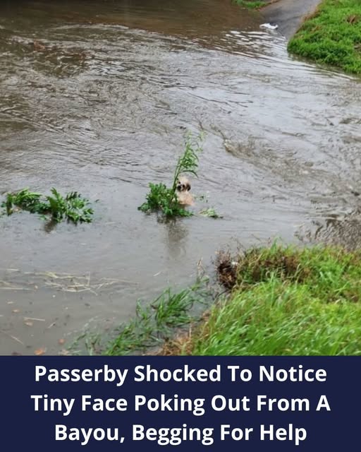 Unfortunately, all he can do is give a heartwarming look and wag his tail in an affirmative manner, but that’s probably enough to confirm his story! This poor little pup was struggling to stay afloat in a drainage ditch, often referred to as a bayou in Houston, Texas.