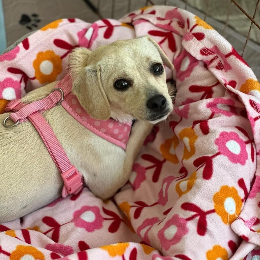 At first, Hilary was unsure. Her walks were hesitant, her tail tucked low. But each day brought tiny miracles. She began to trust. She leaned into Laura’s kindness, snuggled up on soft blankets, and even made new dog friends.“She’s incredibly sweet,” Laura shared. “Still cautious, but she’s blooming. You can see her heart healing.”
