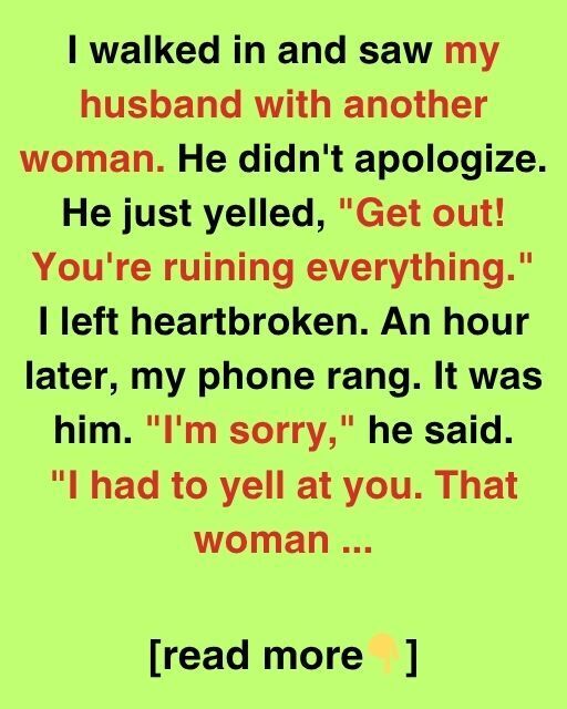 I walked in and saw my husband with another woman. He didn’t apologize. He just yelled, “Get out! You’re ruining everything.” I left heartbroken. An hour later, my phone rang. It was him.