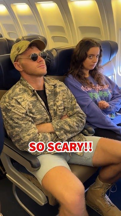 He wore a camo jacket, mirrored aviator glasses—on a night flight—and a trucker hat pulled low. Not a word from him either. But his presence? Loud. Controlling. Like he didn’t want anyone noticing her.